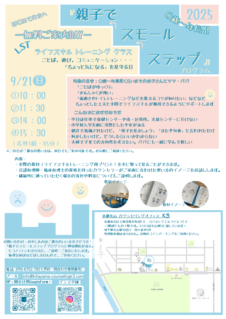 9月21日に「無料ご案内DAY」を開催します。無理な勧誘などはありませんので,ご興味のある方はどうぞお申し込みくださいね(予約制です)。