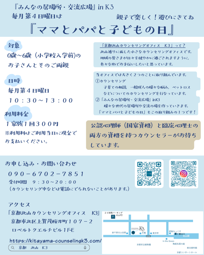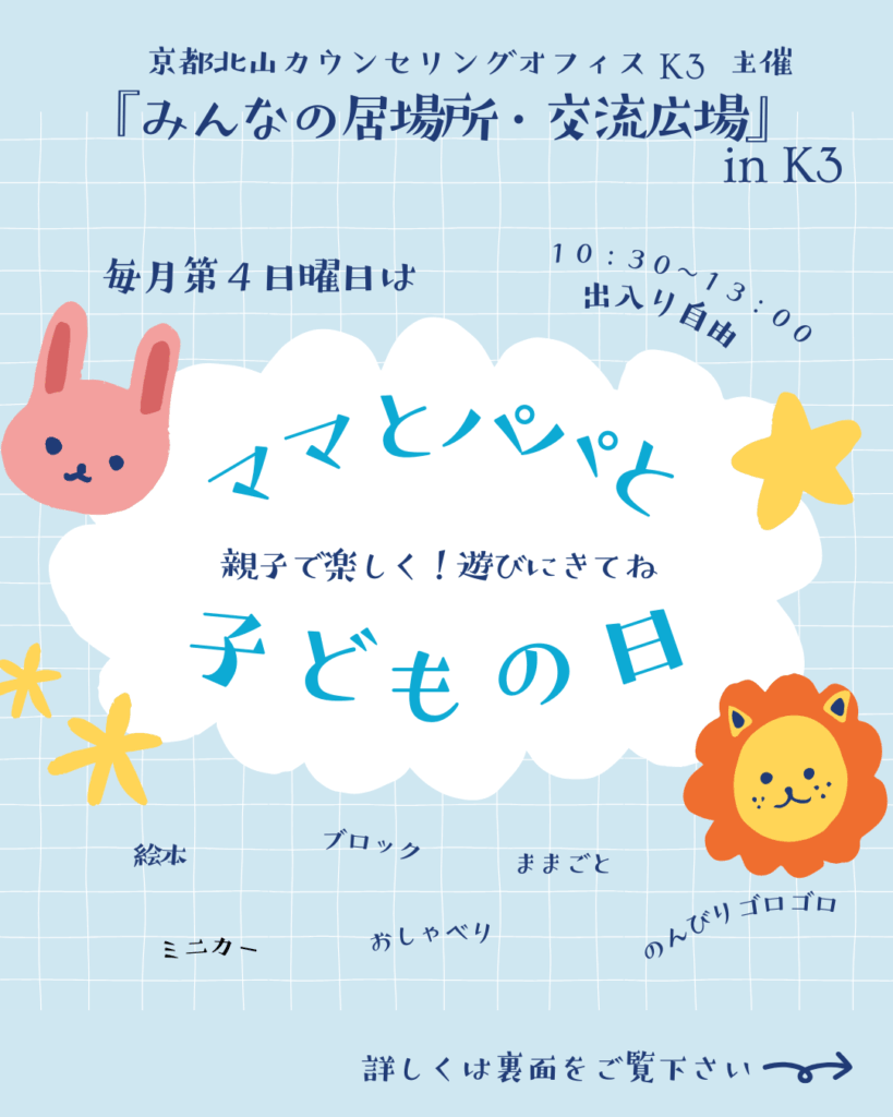 「ママとパパと子どもの日」10:30〜13:00(時間内は出入り自由です)